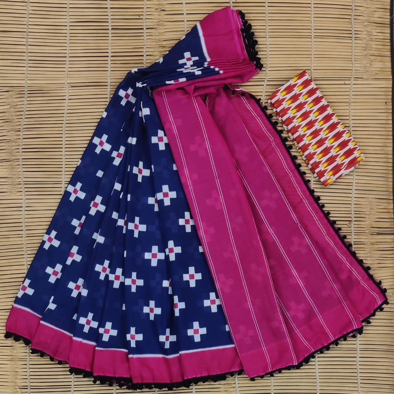 Whatsapp ₹890 free shipping Cotton Printed Sarees With Attach Printed Blouse Size Saree = 5.5 Mtr Blouse = 0.8 - 1 Mtr