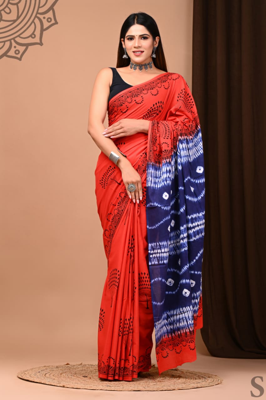 Mulmul cotton handblock sari ₹899 free shipping WhatsApp +918370860832